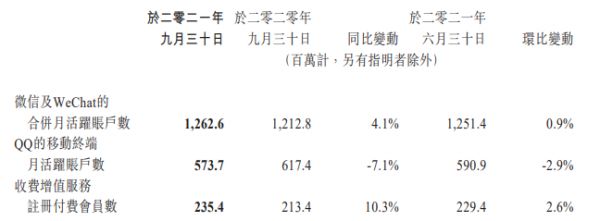2021第三季度,腾讯的收费增值服务付费会员数达到2.35亿,同比增长10%。