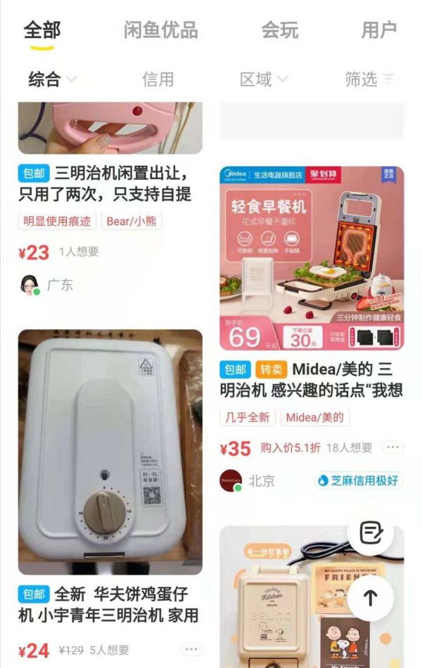 但是现在,在知乎或者豆瓣小组发帖问,“买了什么最后悔”或者“买的什么东西闲置率最高”的帖子下,各种小家电产品一定高居榜首。在闲鱼上,全新、99新的小家电更是数不胜数。