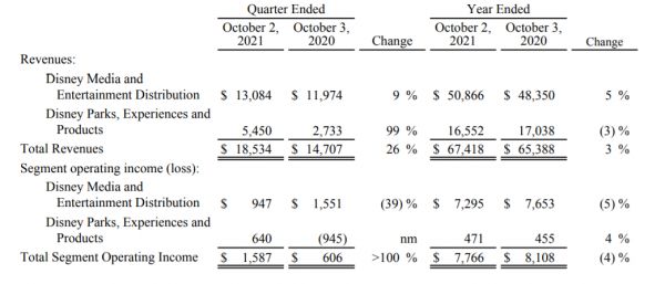 自上个季度疫情恢复开始以来,迪士尼的公园、体验和产品部门终于首次实现了正营业收入,并在最近一段时间内改善了这些业绩。