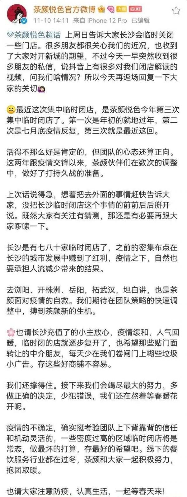 太突然,茶颜悦色关闭87家店,网友喊加油,公司回应:我们还撑得住,发生了什么?