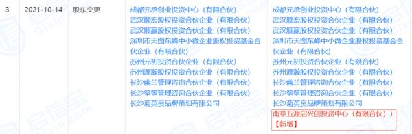 值得注意的是,今年10月,湖南茶悦文化产业发展集团有限公司发生工商变更,公司经营范围新增酒、饮料及茶叶、化妆品及卫生用品销售;家用电器零售等。此外,其股东新增南京五源启兴创业投资中心(有限合伙)。