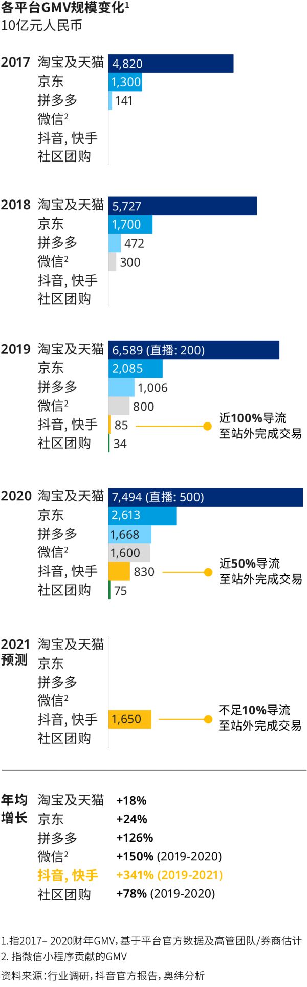 过去四年,抖音和快手电商增长,已经成为电商世界不得不重视的两股力量。抖音的身份,逐渐从阿里的合作伙伴,变成了阿里的直接竞对。