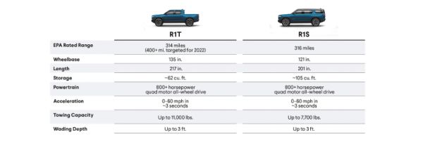 ▲Rivian两款车的主要参数
