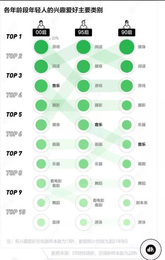 根据DT财经发布的《2021当年年轻人兴趣爱好大调查》显示,音乐成为00后TOP3的兴趣爱好,比90后、95后表现出更浓厚的兴趣。音乐平台要想在后版权时代破局,归根到底是赢到这些Z世代的年轻用户。