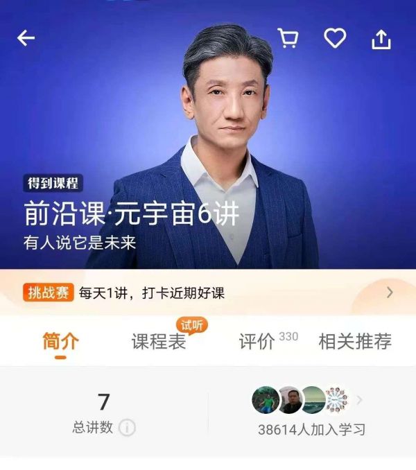 在罗振宇创立的得到APP上,网课《元宇宙6讲》价格为29.9元,截至发稿,下午的学习人数已达38614人。不考虑折扣,该网课总营收超过100万元。