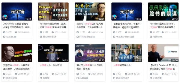 此外,还有一些UP主在B站等平台推出了元宇宙科普视频,同样收割了不少流量。