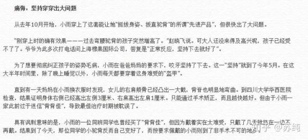 当然,从案例中我们也能够得到一些别的信息,比如使用者除了睡觉以外长时间佩戴背背佳,已经严重超过了背背佳所建议的每天使用时长。另一方面,背背佳本身的建议使用时间是半个月至一个月,而案例中的使用者为了满足矫正效果,使用了长达半年的时间,最终导致了悲剧的发生。