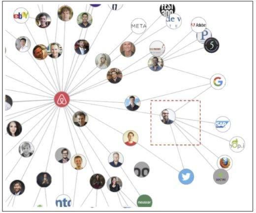 上图表示的是为房东和租客提供房屋租赁服务的初创公司,爱彼迎(Airbnb)的网络图像。爱彼迎 在 2013 年聘请了 Google 原高级产品经理 Thomas Arend 博士。