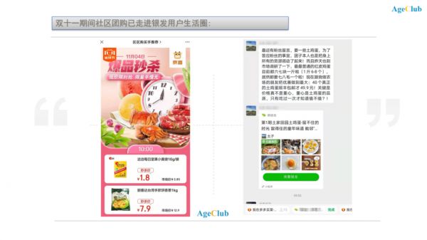 AgeClub认为银发老用户转战社区团购,背后代表的已不仅是平台的用户分流,更是用户生活方式和消费习惯的迭变。