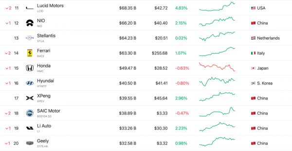 11月11日截至发稿,全球汽车市值发生了新的排名变化。