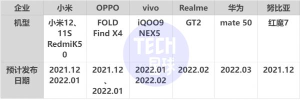 从Tech星球汇总的入网信息看,目前各家主力机型的发布时间如下。各家都在争骁龙898 的首发机型,预计12月发布的小米 12 、努比亚代号为NX679J的手机(预计是红魔7),以及联想摩托罗拉Edge 30 Ultra ,是最有可能搭载这款芯片的首发智能机。