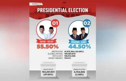 印尼选举委员会周二正式公布佐科顺利连任(图片:Jakarta Globe)
