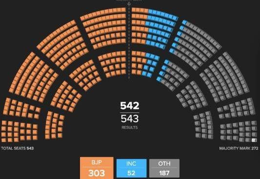 在印度,莫迪领导的印度人民党(BJP)获得了议会半数以上的席位(图片:ToI)