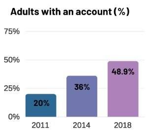 印尼的银行账户渗透率 ,来源:墨腾印尼金融科技报告(2019年版)