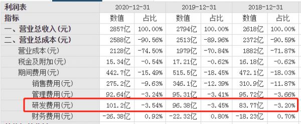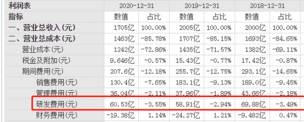 从研发投入来看,2018年至2020年,研发费用分别为69.88亿、58.91亿、60.53亿,增速不明显,而美的近三年研发费用分别为83.77亿、96.38亿、101.2亿,格力明显不如美的。
