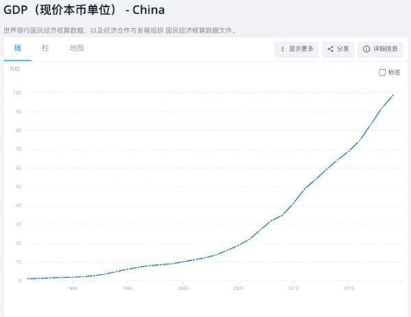 同期,中国福布斯排名前十的富豪,人均财富从360亿人民币增长到了2588亿人民币,年复合增长高达16.9%;同样是世界银行数据显示,2009年到2019年的10年间,中国按年度GDP(按现价人民币计)从38.85万亿增长到了98.65万亿,年复合增长率超过9%。