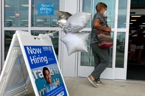 2021年7月21日,伊利诺伊州的一家零售店前,一名购物者路过招聘标志。图片:CBS