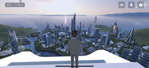 进入「希壤」的世界后,你首先会出现在一个高楼的观景平台上,放眼望去是一个虚拟城市。