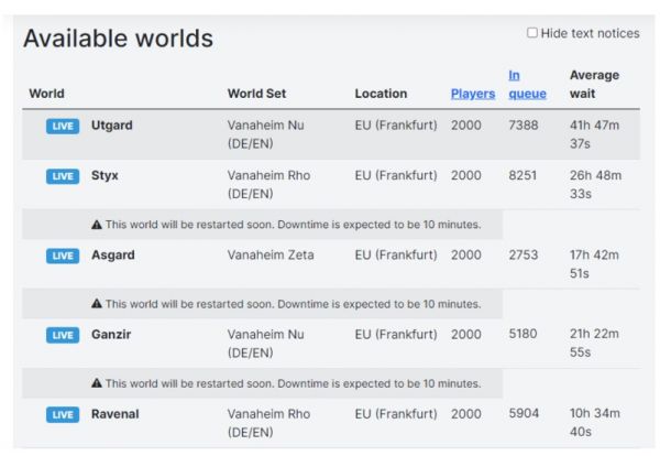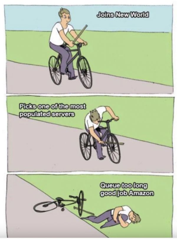 而更重要的是,亚马逊将每个首发服务器的登录人数都限制在2000人以下。这对大型开放类游戏来说是极度不合理。以美国为例,全美共76个服务器,意味着只有15万人左右能同时登陆,这也直接导致了大面积的排队现象。有些玩家甚至在排队4、5个小时以上后,被系统提示加入失败再必须从头再排。