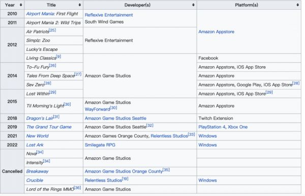 十年来亚马逊发布和取消制作的游戏,图片来自维基百科