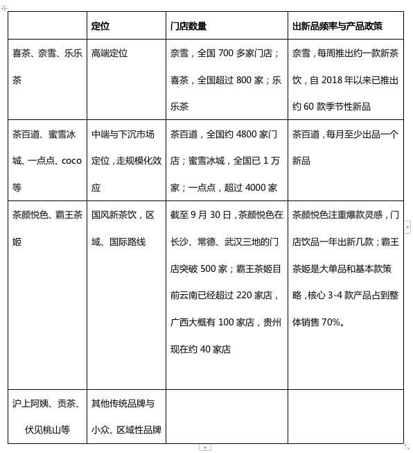 行业内,喜茶、奈雪、乐乐茶定位高端,主攻一二线城市,做全国布局。喜茶和奈雪的新品在行业内也往往具有风向标效应。与奈雪相比,喜茶虽然没有上市,但是估值已经过600亿,占据行业风向标位置。