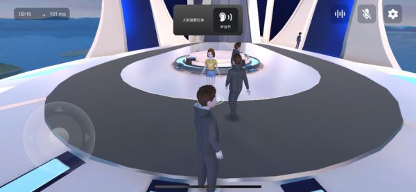 在社交功能玩法上,用户可进行自由的语音交流范围设置,当用户在元宇宙中靠近彼此,达到“听到”的距离时,可以和对方交流。
