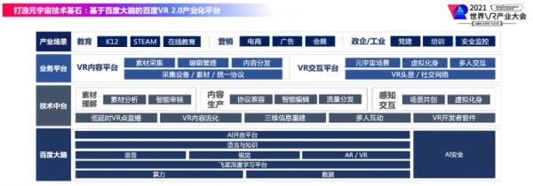 此外,据百度副总裁马杰在AI开放日上提到,百度还推出了VR产业化平台2.0版本,为元宇宙行业的发展提供平台型服务,并进一步推动百度VR在会展、教育、营销等多个行业场景中的应用。