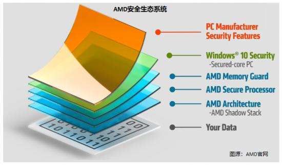 作为与英特尔vPro直接竞争对手,AMD PRO同样为旗下商用电脑提供了全面的安全防护体系,集成了12类安全防护功能,并与微软、联想、惠普等软硬件厂商合作构建了“安全生态系统”。