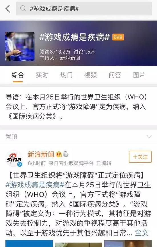 5月25日,世界卫生组织(WHO)经过投票正式将“游戏成瘾(Gaming Disorder)列为一种疾病,纳入《国际疾病分类》。