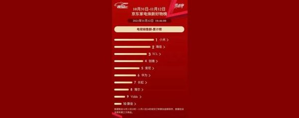 今年双11期间,大尺寸电视成为拉动彩电销量的主动力。国美电器公开数据显示,双11期间销售的激光电视、OLED电视销售同比增长近50%;京东平台电视销售累计榜显示,前10名中,国产品牌占据九位,进口品牌仅有索尼上榜。