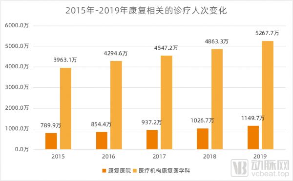 2015年-2019年康复诊疗人次变化,数据来源:《中国卫生健康统计年鉴》,动脉网整理制图