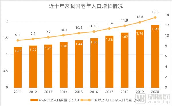 我国人口老龄化趋势,数据来源:国家统计局,动脉网整理制图