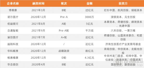 2020年-2021年功能神经外科领域融资事件,数据来源:动脉橙,动脉网制图