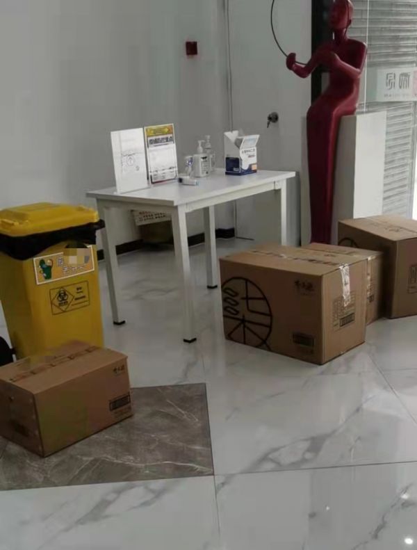 来到墙体侧面印有微念logo的主楼,刚进公司,便发现门口堆放着数箱印有“李子柒”logo的货品。包装上写有员工名字,但未见快递单。随后探访中,笔者也遇到了正用板车将印有“李子柒”logo的货品从后门运进办公楼的微念员工。