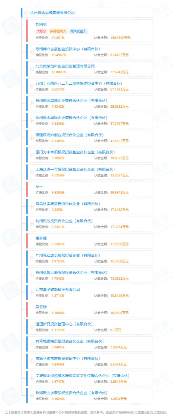值得注意的是,李佳佳在杭州微念中并无持股。