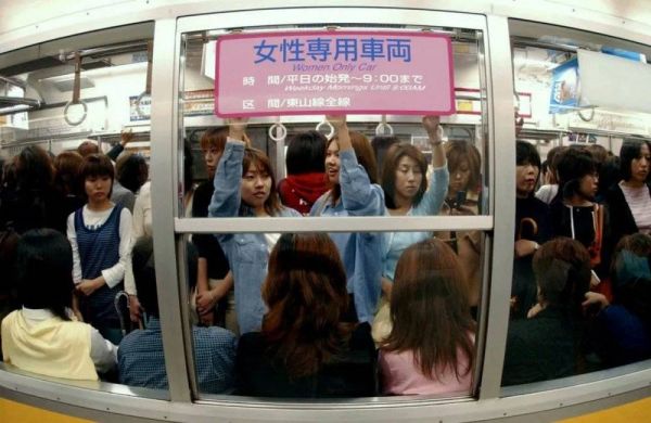 2002年,名古屋地铁的女性专用车厢。平成年代,在社会的各个领域活跃的女性越来越多,这也是日本社会整体的进步之一。