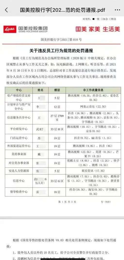 近日,网上流传了一份国美电器对员工的处罚公告,公告显示,国美电器统计了员工的非工作流量信息,甚至细化到各个App的流量使用情况。对于这些员工国美电器做出了不同程度的处罚。