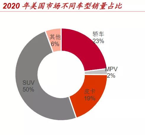 图:2020美国市场不同车型销量占比(来源:Marklines,中泰证券研究所)