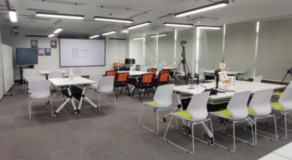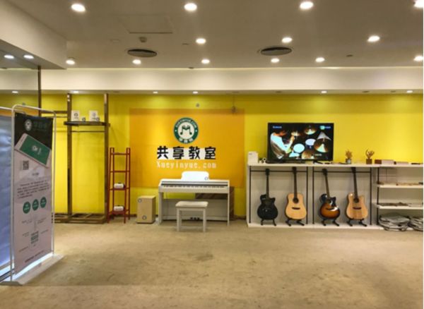 一夜之间,500平方米的体验店布置好了。体验店里配备了乐器和大屏幕,学生可以在店里体验在线音乐课的好处。唯一和之前设计不同的是,隔出了办公区域。