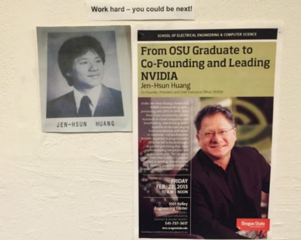 拿回奖杯后,老黄闭关一年,成功地在16岁就考上了俄勒冈州立大学,非常前瞻地选择了主修电子工程专业。毕业后,黄仁勋毫不犹豫赶往擅长开发微处理器的AMD公司工作,此后又跳槽到了更加专注于芯片的图形处理功能的LSI Logic公司。