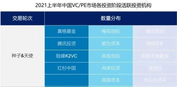 CVSource投中数据显示,2021年上半年,在早期阶段(种子&天使)投资数量最多的14家机构中,有超过半数的位置被VC/PE占据,红杉中国、高瓴创投、深创投、高榕资本、IDG资本等悉数出现在列表之中。