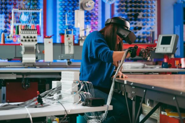 当你戴上手套进入 VR 或 AR 世界时,这套工具上复杂的控制系统会调整充气,在你手上制造拟真压力。如果你用指尖触碰虚拟物体,还会感觉到特定的触感。如果你抓起了虚拟物体,手指上的致动器就会变硬,从而产生阻尼感。这些感觉与视觉和音频交互一同工作,就会产生身体接触物体的错觉。