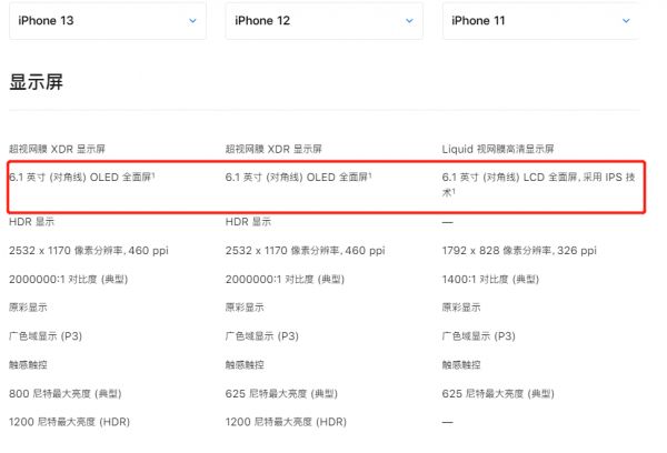 iPhone 13、iPhone 12和iPhone 11屏幕对比