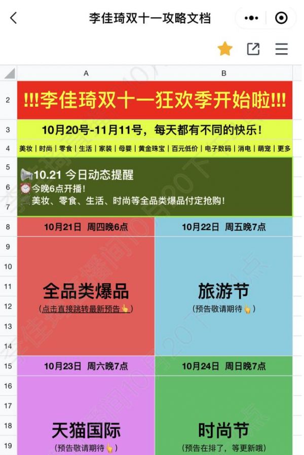 是的,不管你看不看得懂,共享文档就是在今年成为了一个流量密码。从河南暴雨中的《待救援人员信息》,到大厂员工的各种信息共享,很快Excel就成为商家的营销工具,走进双11。