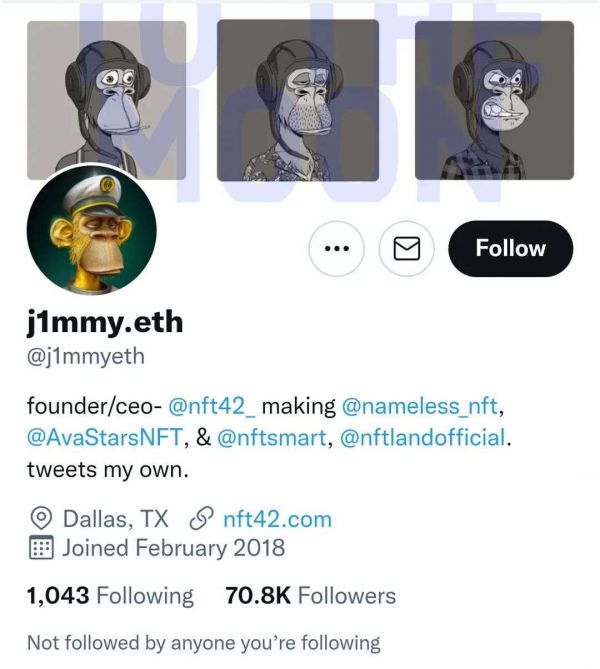 而这种虚拟社区中,猿人NFT的持有者们成为共同体,彼此间有强烈的身份认同感。2021年5月,BAYC社区发起ape follow ape(猿猴关注猿猴)活动,邀请NFT持有者在各类社交媒体更换猿猴头像,彼此互相关注、互相支持。