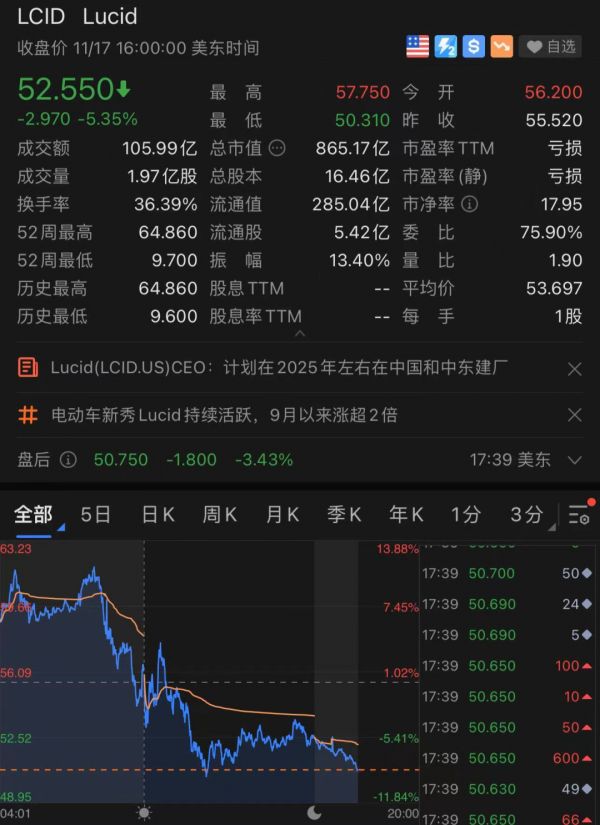 Lucid计划中国建厂引发供应链预期,这家供应商股价大涨逾8%