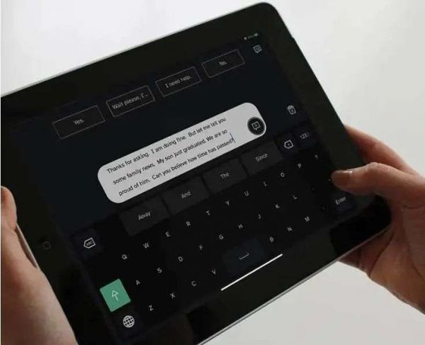 除此之外,TD Talk 能够加快沟通进程。一方面,用户键入的文本会在 iPad 背面的合作伙伴窗口(Partner Window)同步显示,文本可无缝切换到需要的语言;另一方面,TD Talk 提供常用和自定义短语,例如「我需要帮助」和「请稍候,我正在打字」,从而保持更自然的说话速度。