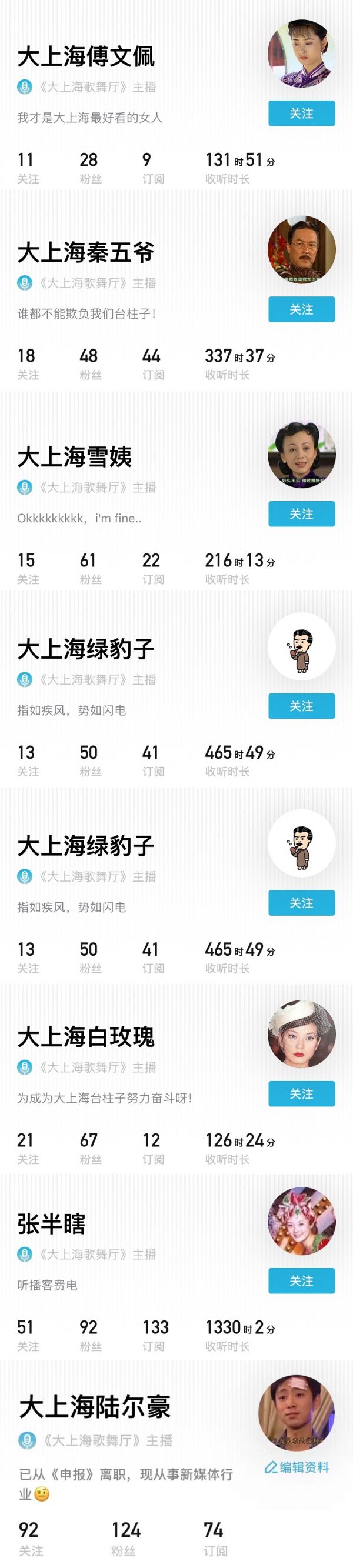 《大上海歌舞厅》的七位主播