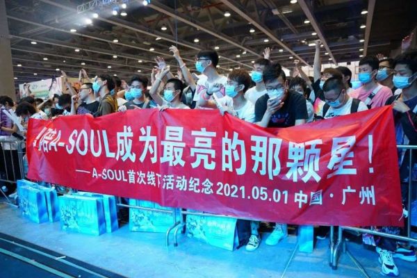 年中,乐华娱乐旗下虚拟偶像女团A-SOUL便办起了首次线下活动,现场人潮拥挤,硬核男粉举牌示爱的场面格外壮观。此后,该女团还在漫展、主题展等频频亮相,人气持续飙升。