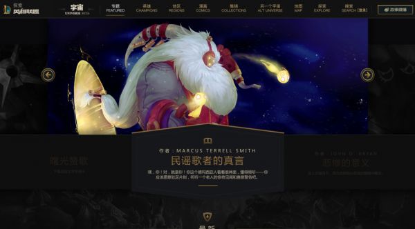 2017年1月,以《英雄联盟》背景故事、相关传说和艺术创作等内容为基础的网站“英雄联盟宇宙”中国版正式上线,该网站搭建了专属于“英雄联盟宇宙”世界观的平台。